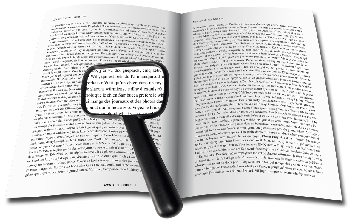 Ne pas laisser d’erreurs et confiez la relecture à un correcteur professionnel (service « correcteur » de Come Concept). Le lecteur expérimenté pourra vous proposer la rédaction d’une préface et d’un résumé attractif pour la page 4 de couverture (le résumé est primordial pour convaincre vos futurs lecteurs d’acheter votre livre).